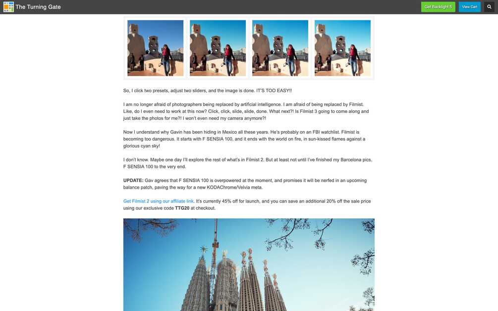 The WP Theme add-on allows you to convert Backlight's page designs into WordPress themes, providing coherence between your Backlight-managed image galleries and your WordPress-driven blog.